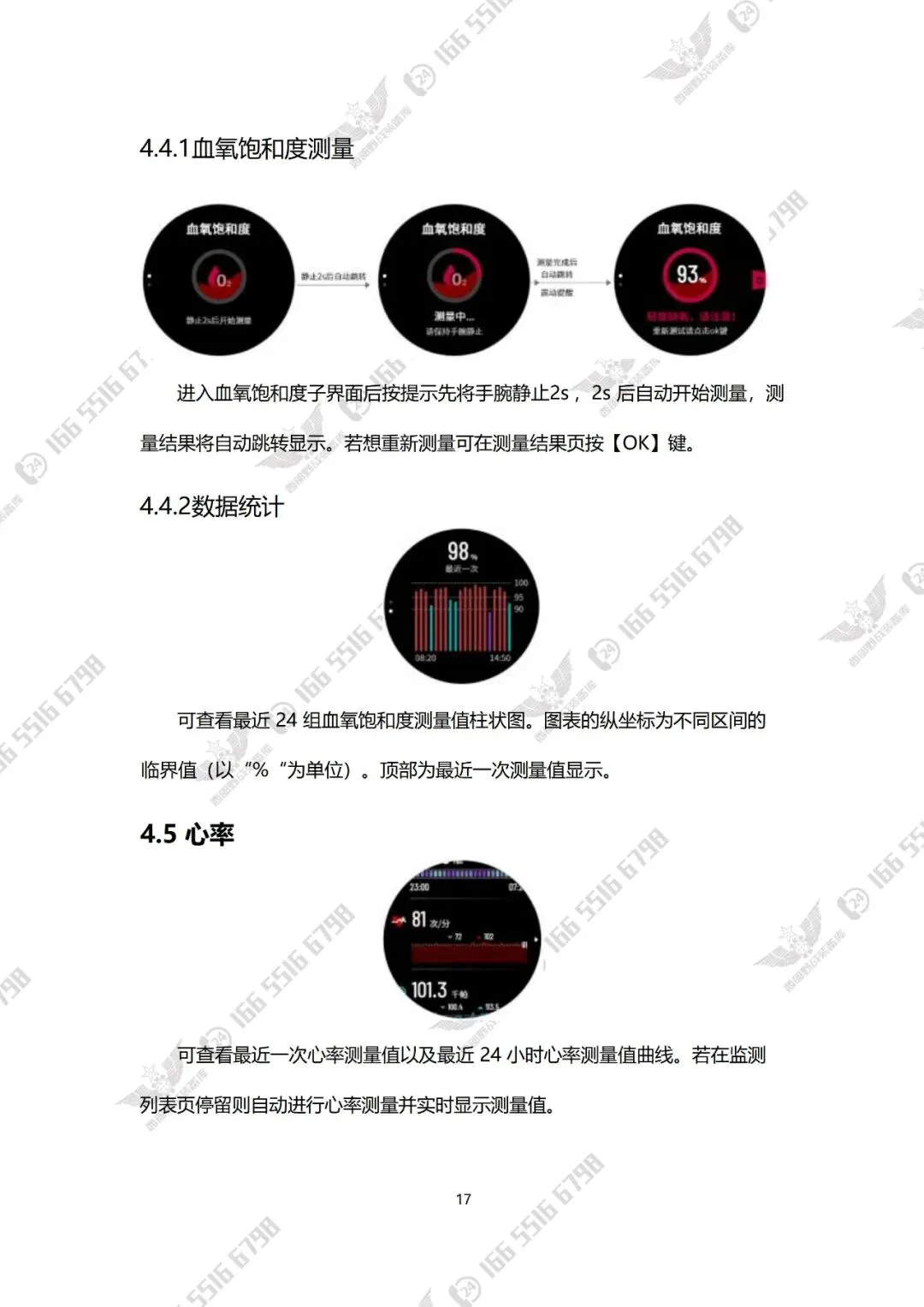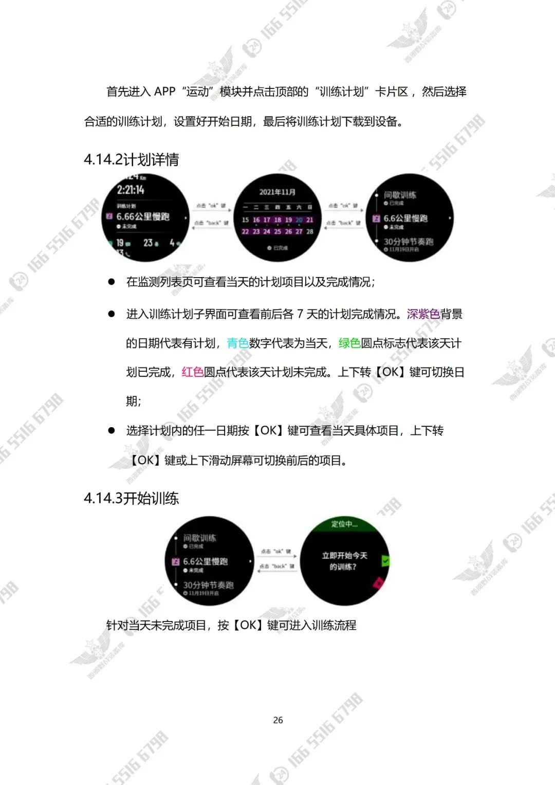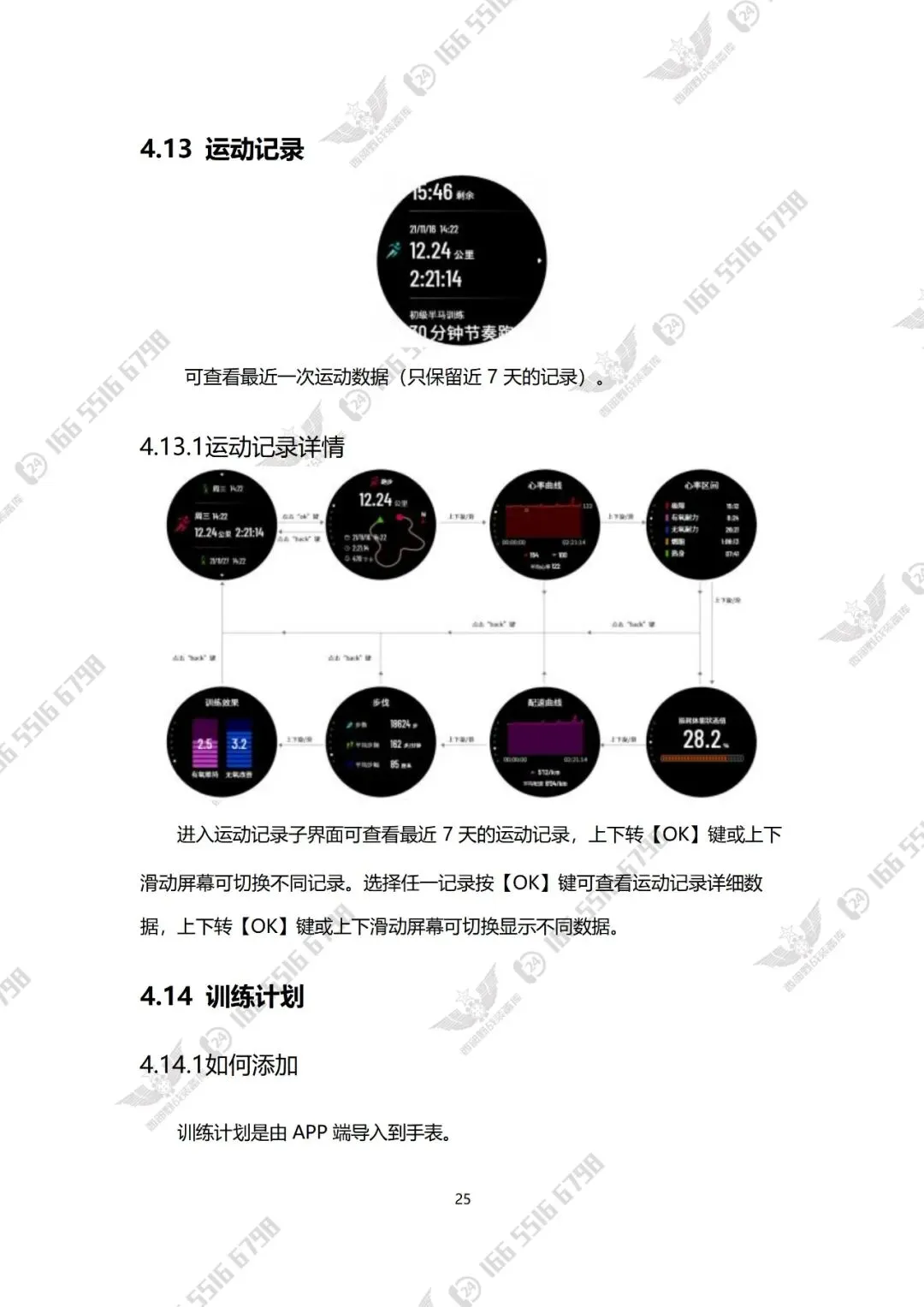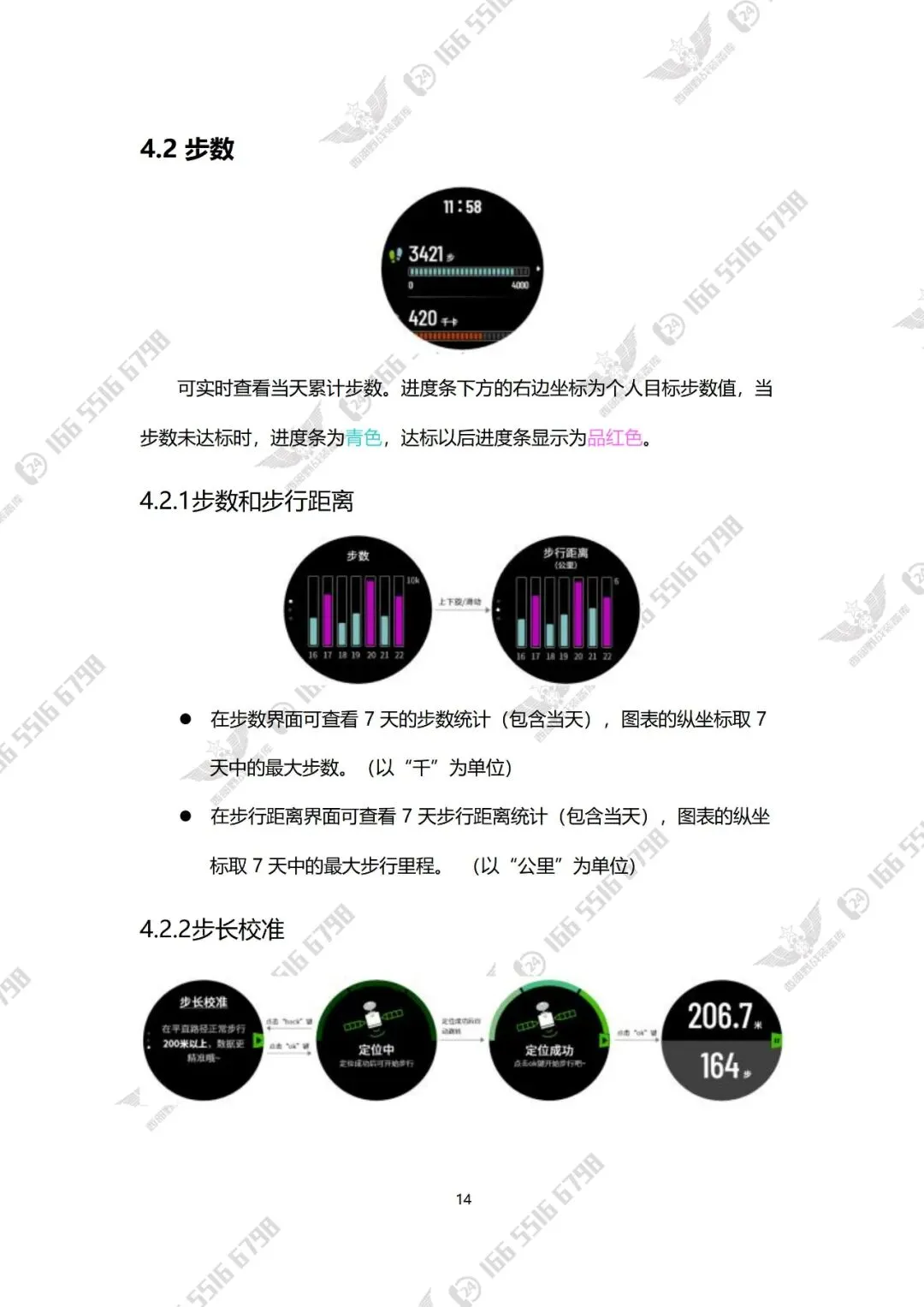 主要功能:步数、运动能耗、血氧饱和度、心率、身体压力、气压、海拔、气温、天气、日出日落、运动记录、训练计划等功能;