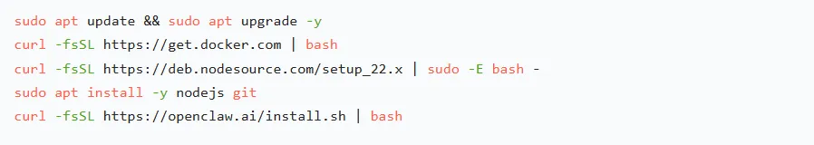 :下载 OpenClaw 官方包(GitHub 免费)、安装 Node.js 22 + 和 Git