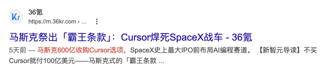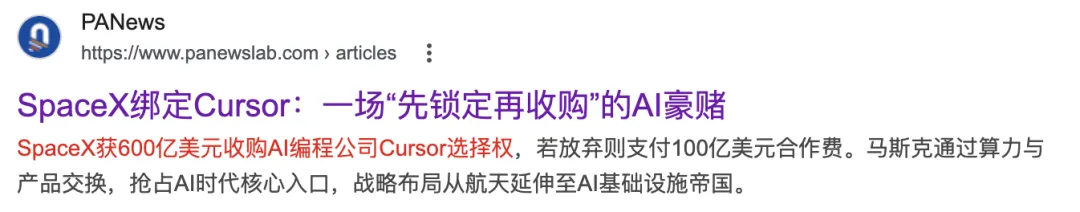 SpaceX给Cursor开出的,不是一个普通收购价。而是一张带有强控制意味的期权协议:今年晚些时候,600亿美元全资收购;不买,也得赔100亿美元。