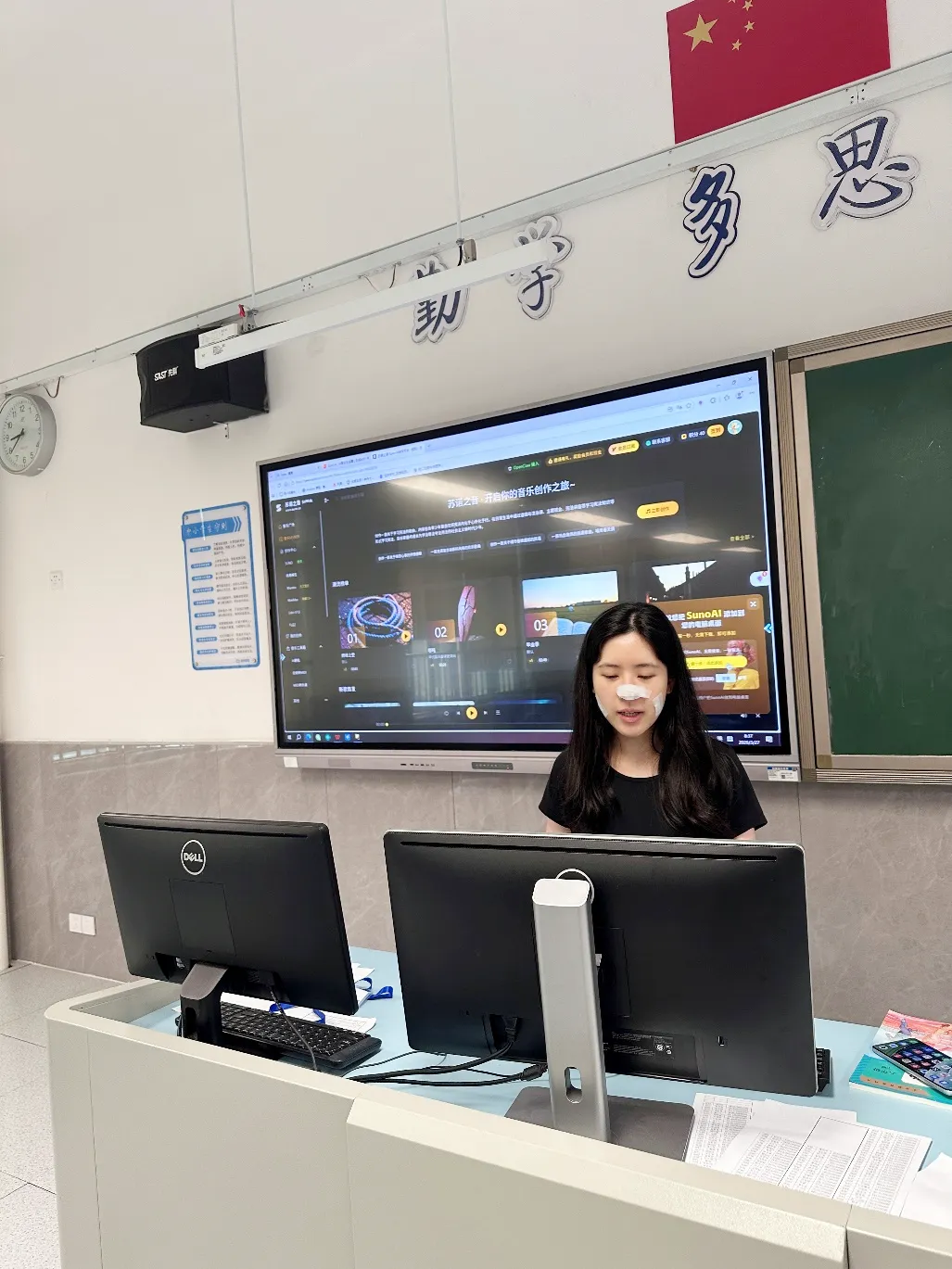 3 月 27 日,中学道法学科李晓洁老师展示苏诺 sunoai 平台 AI 音乐旋律创作技能,将美育与法律相结合,尊崇宪法,贯彻依法治国基本方略,推进法治中国建设,呈现课堂教学新生态。本次分享会搭建了学科交流平台,推动信息技术与课堂深度融合,为我校智慧教学创新发展注入新动能、新活力。