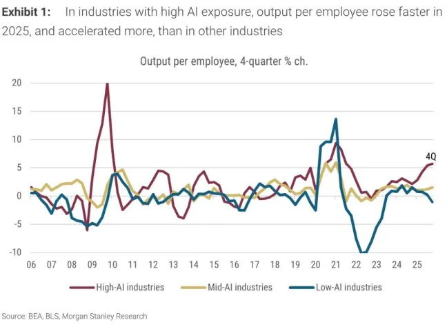 一、生产率加速的分水岭:AI高暴露行业正在领跑