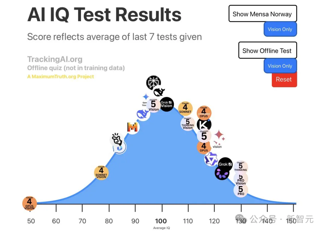 这并非孤例。就在本月初,GPT-5.4 Pro 已经在TrackingAI公开榜单上跑出150 IQ,登顶所有公开IQ跑分。