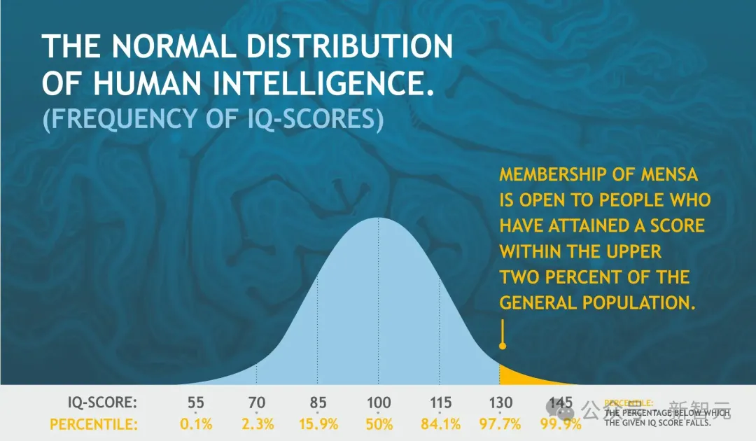 智商IQ达到全人类前2%,分数线130。