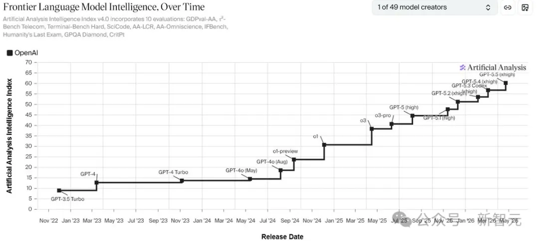 OpenAI正以快速、稳健的步伐持续推出新模型,在Artificial Analysis智能指数上稳步前行。