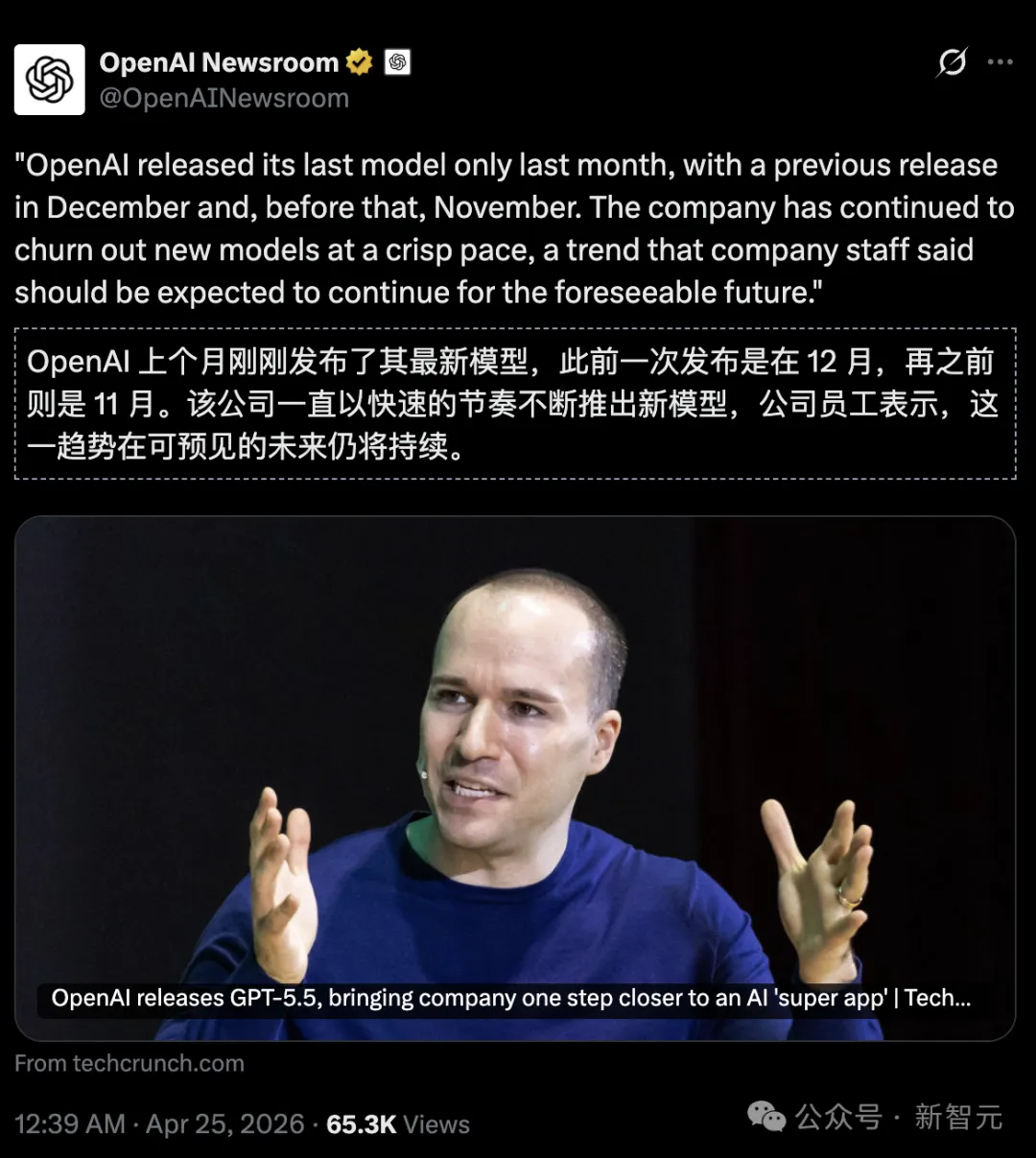 上个月,OpenAI 才刚刚发布了一个模型,再之前是去年12月,以及去年11月。