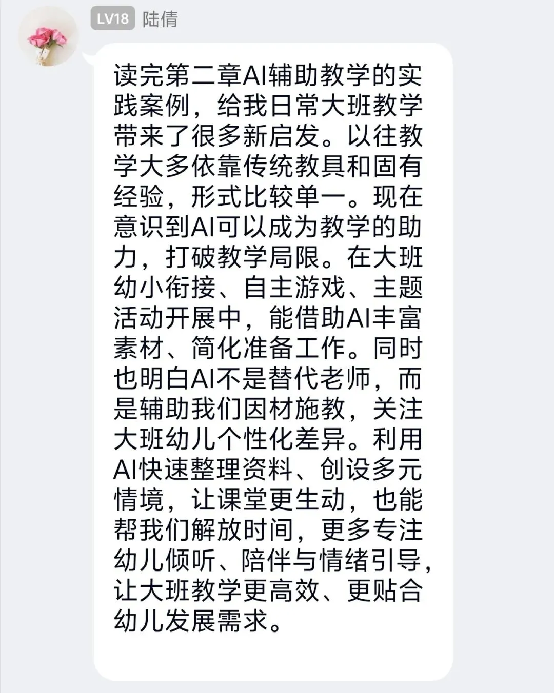 二者相互配合,AI减负提效,教师深耕育人,分工协作,让大班教学既高效便捷,又充满人文温度,助力幼儿全面发展。