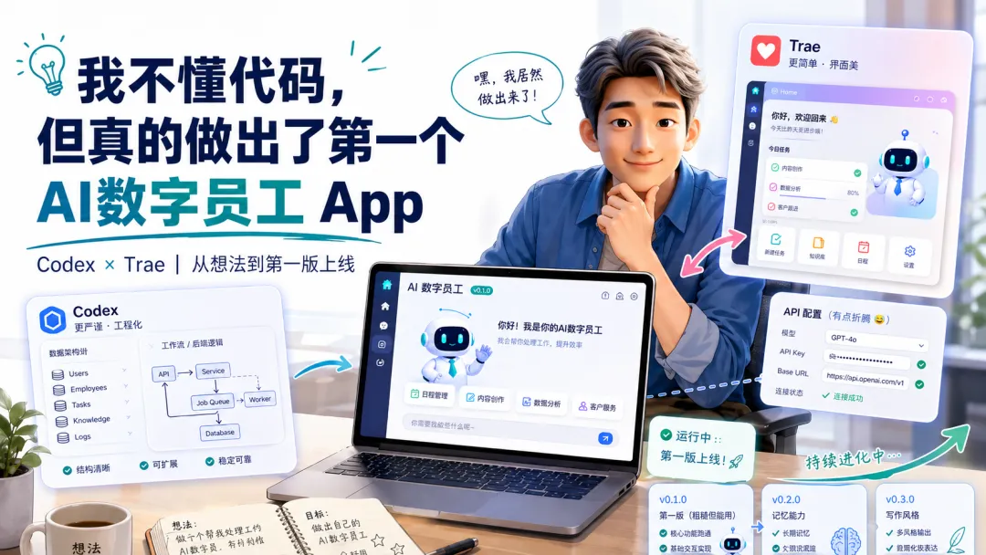 我不懂代码,但我用 AI 编程工具,真的做出了自己的第一版 AI 数字员工 App。