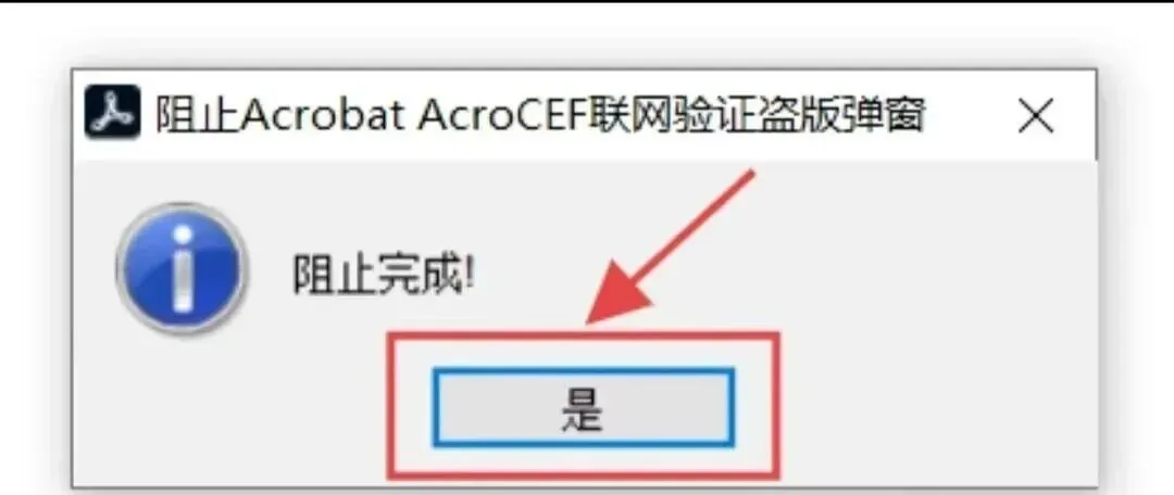 4.等一会弹窗显示阻止完成后,点击是
