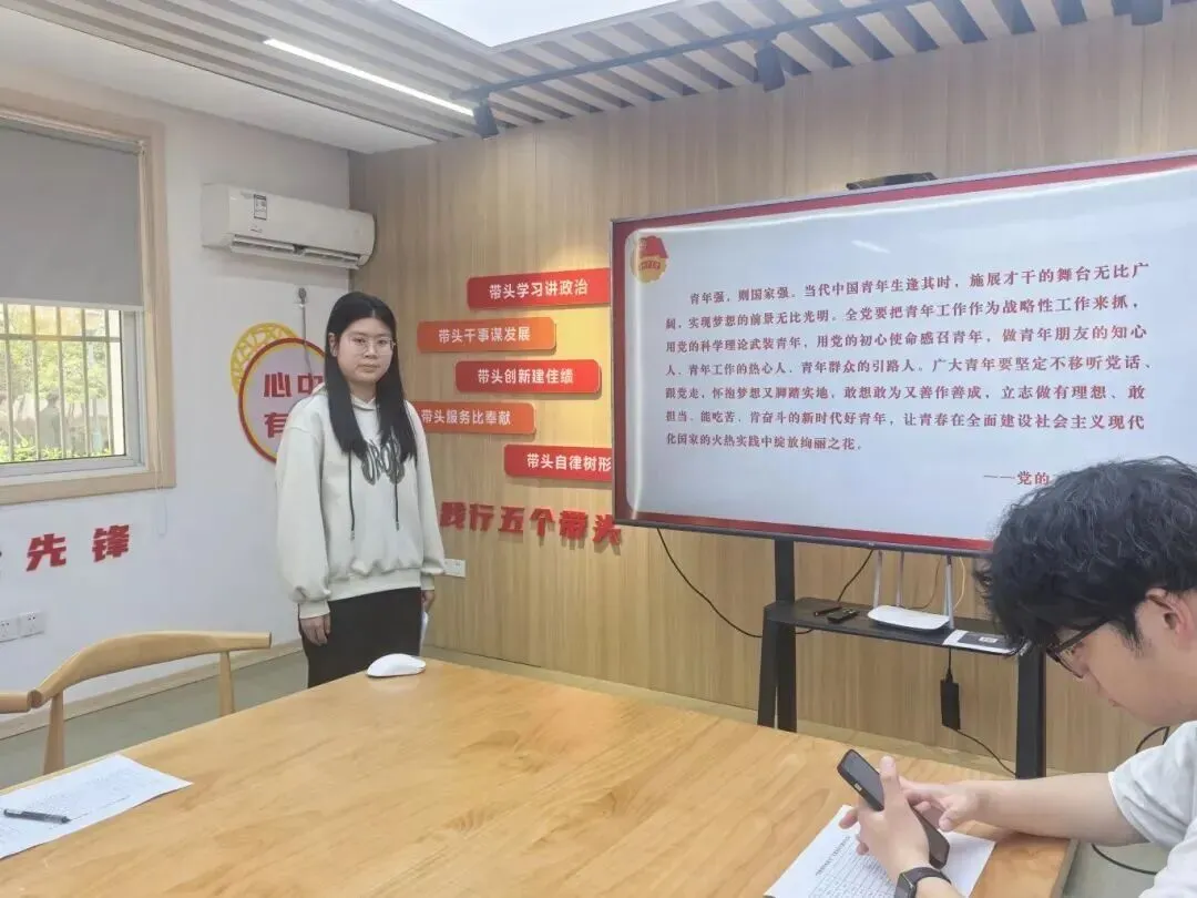 软件253班黄鑫悦、区块链251班冯宇翔等选手,以“五个带头”为标尺(带头学习讲政治、带头创新建佳绩等),现场展示了团干部的政治判断力与组织凝聚力。