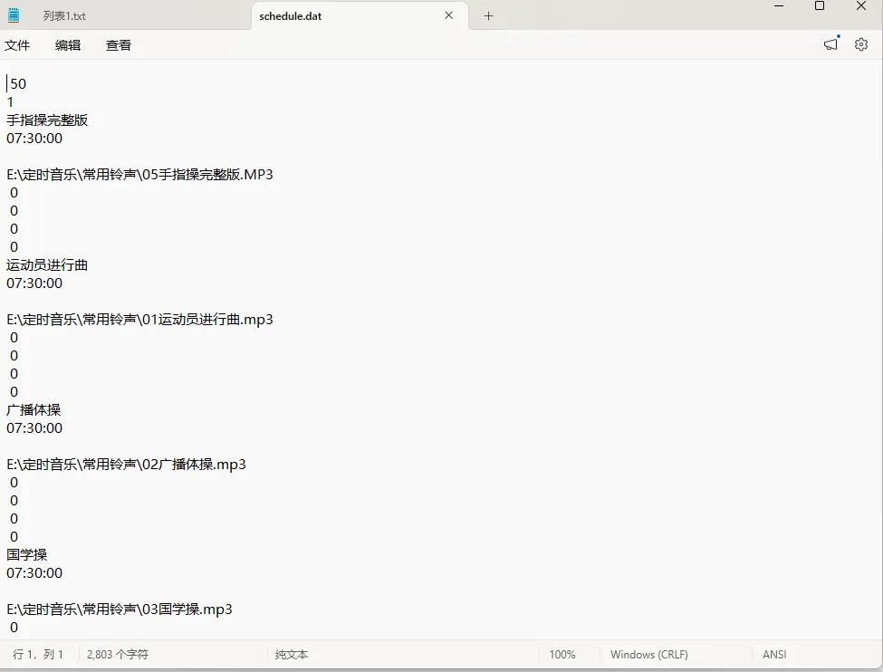 也可以采用记事本直接打开根目录下的schedule.dat文件,在里面直接修改。如下图: