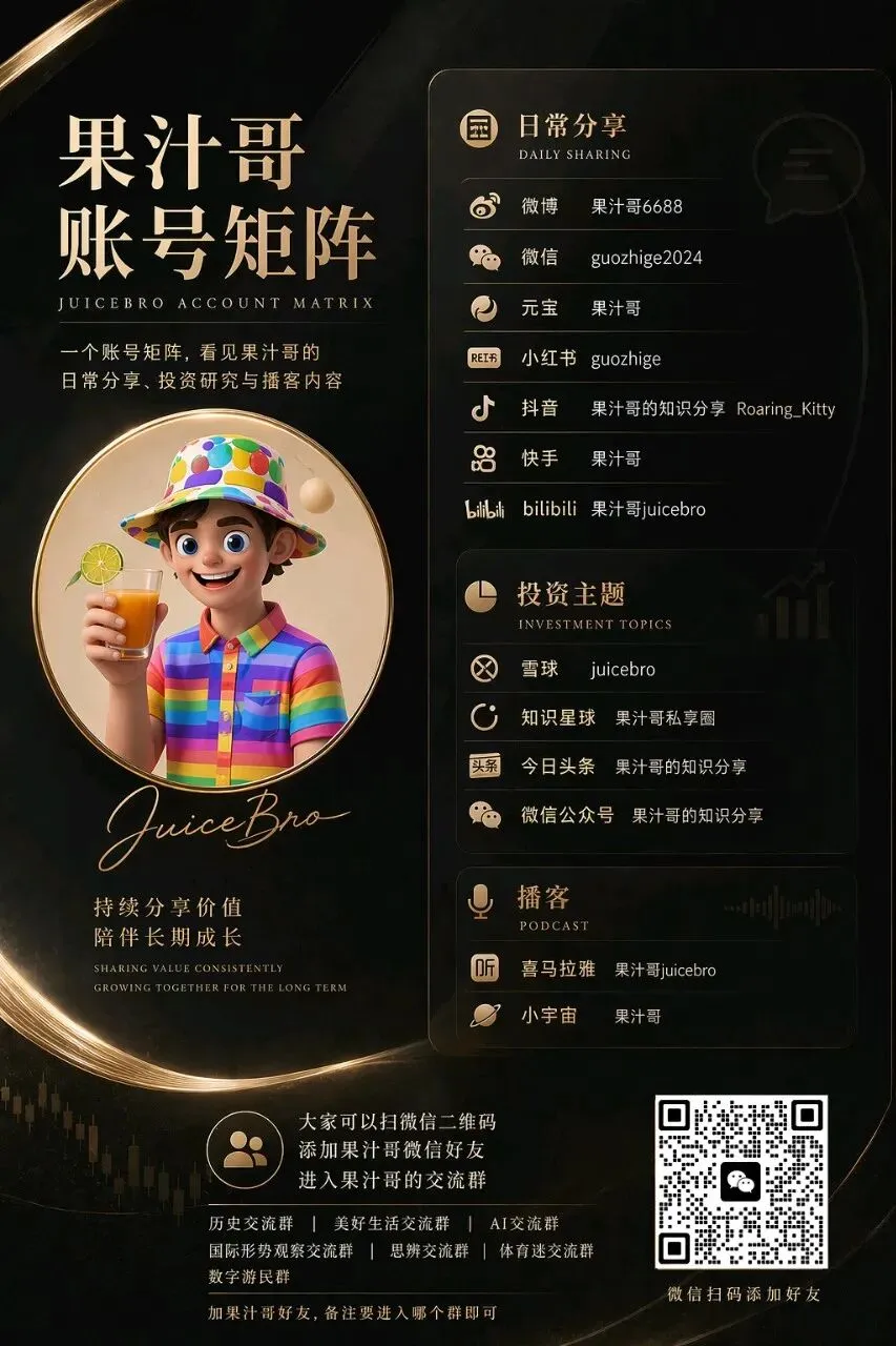 日常分享,我会放在微博 果汁哥6688、微信 guozhige2024、小红书 guozhige、抖音 果汁哥的知识分享 Roaring_Kitty、快手 果汁哥、B站 果汁哥juicebro。
