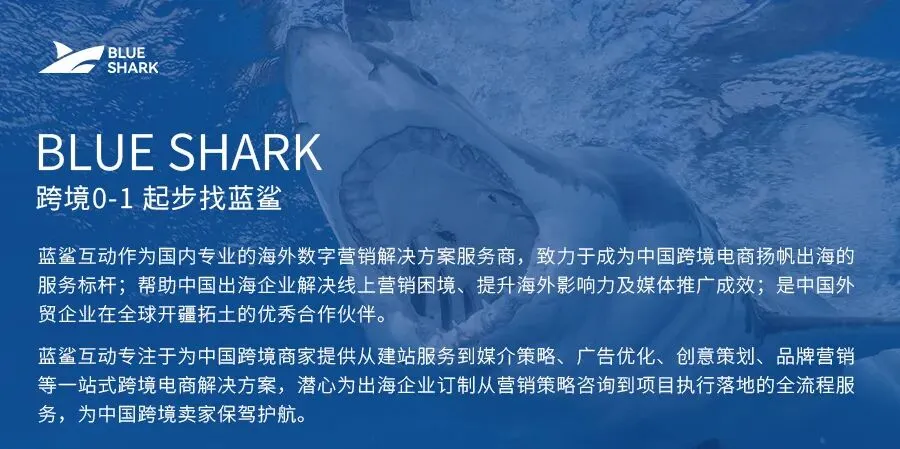 蓝鲨互动专注于为中国跨境商家提供从建站服务到媒介策略、广告优化、创意策划、品牌营销的一站式跨境电商解决方案,潜心为出海企业订制从营销策略咨询到项目执行落地的全流程服务,为中国跨境卖家保驾护航。