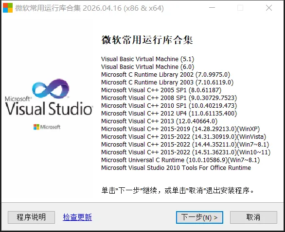 安装软件提醒dll文件缺失?微软常用运行库合集打包版,最新Visual C++一键直装版本!装机必备神器