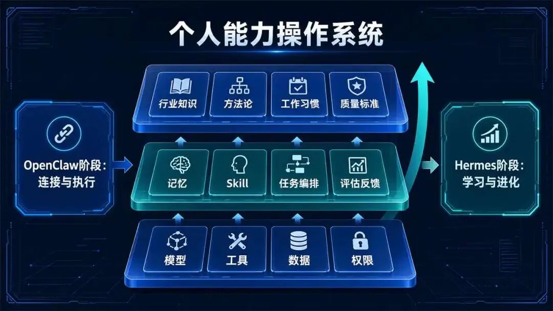 因此Hermes对OpenClaw的启发不在于新热点替代旧热点,而在于提醒我们:未来个人智能体的核心竞争,不只是入口多、工具多、模型多,而是谁能把人的工作经验变成可验证、可迁移、可复用的流程资产。