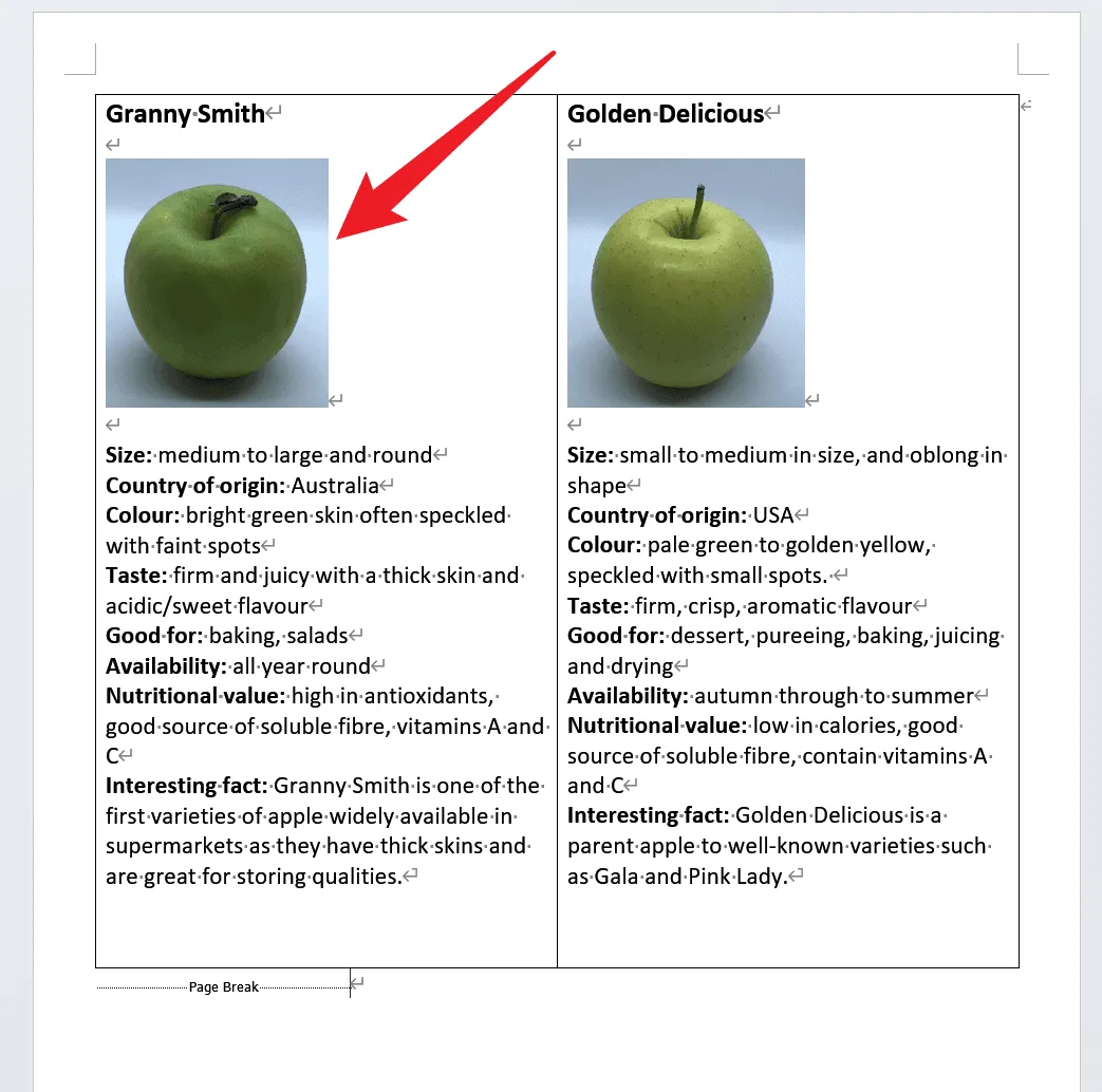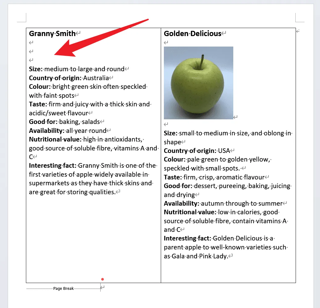 从示例截图可以看到,处理前的 Word 页面中左侧区域包含一张苹果图片,红色箭头标注了需要删除的目标图片。