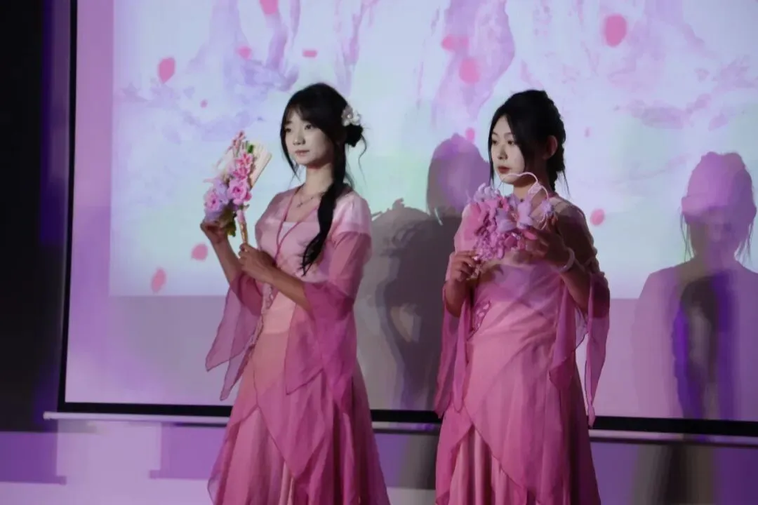 除了深情的朗诵,大会还融入了丰富的传统文化元素,进一步丰富了格微企业文化的内涵。文艺骨干编排的舞蹈《人间四月》轻盈婉转,如诗如画;汉服爱好者及文艺骨干共同呈现的非遗汉服簪花扇表演《咏梅》,将传统服饰之美与梅花傲骨完美融合,并向职工们普及汉服文化,传承中华传统服饰之美。