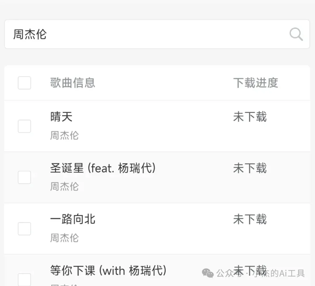 批量下载:用户可以勾选多首歌曲,实现一键批量下载,方便快捷。 -