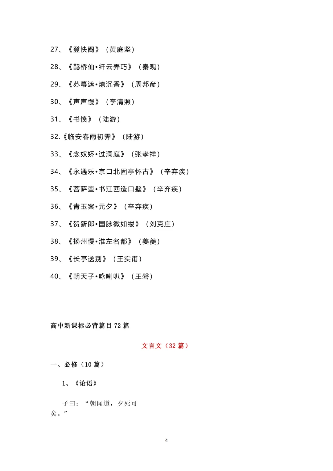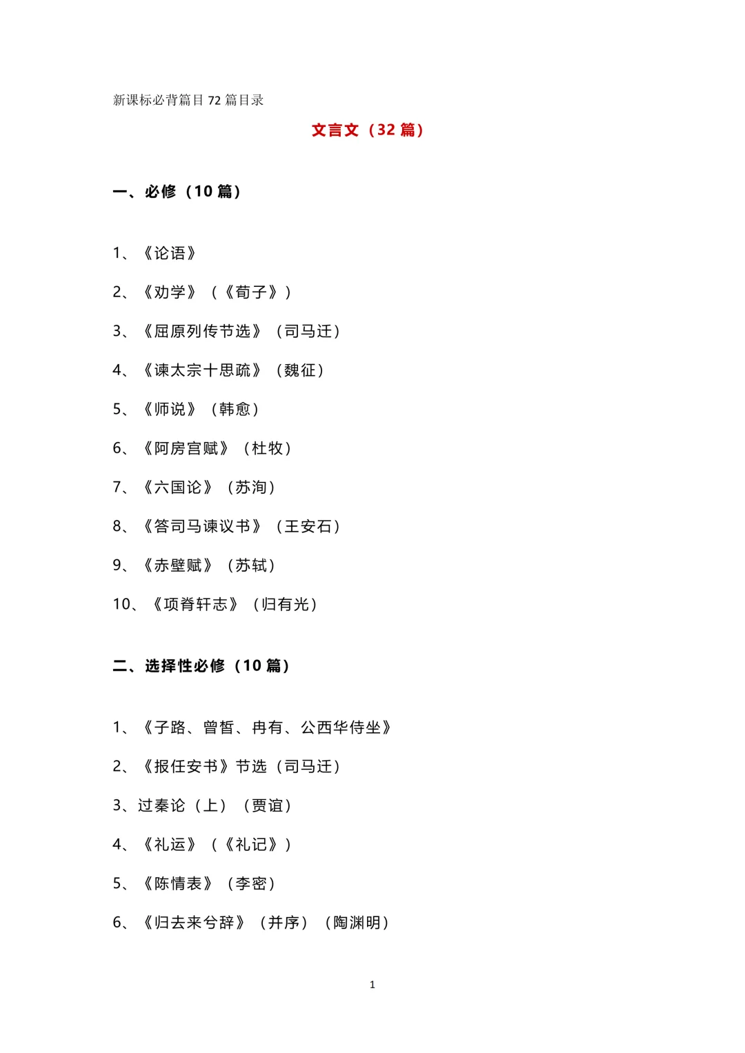 新高考语文必背72篇古诗词原文(word+pdf资源)