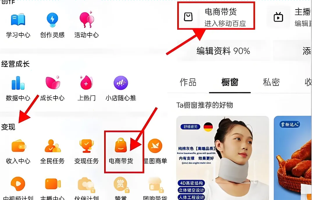 点击“我”进入抖音创作者中心,然后找到“全部”里的“电商带货”。目前开通橱窗的要求是粉丝达到1000。如果你有运营经验,花一周时间做内容涨粉就能满足;如果没有,那可以用钱来快速解决。