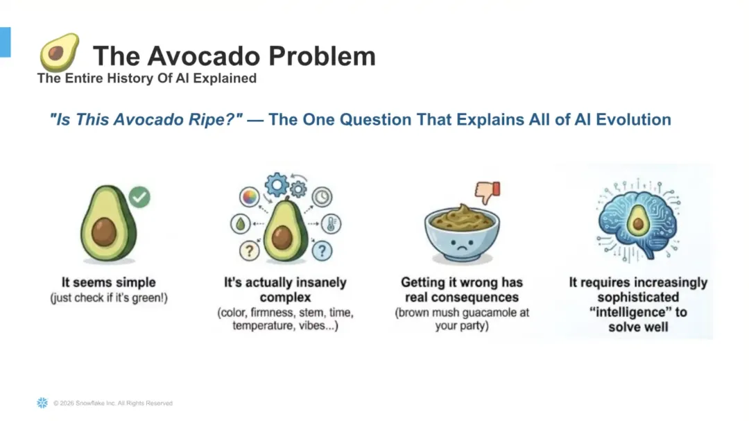 Snowflake 机器学习高级架构师 Sheena Nasim 用这个问题,巧妙地揭开了 AI 七十年演进史的底牌。这不仅是一道生活常识题,更是衡量 AI 能力边界的绝佳隐喻。