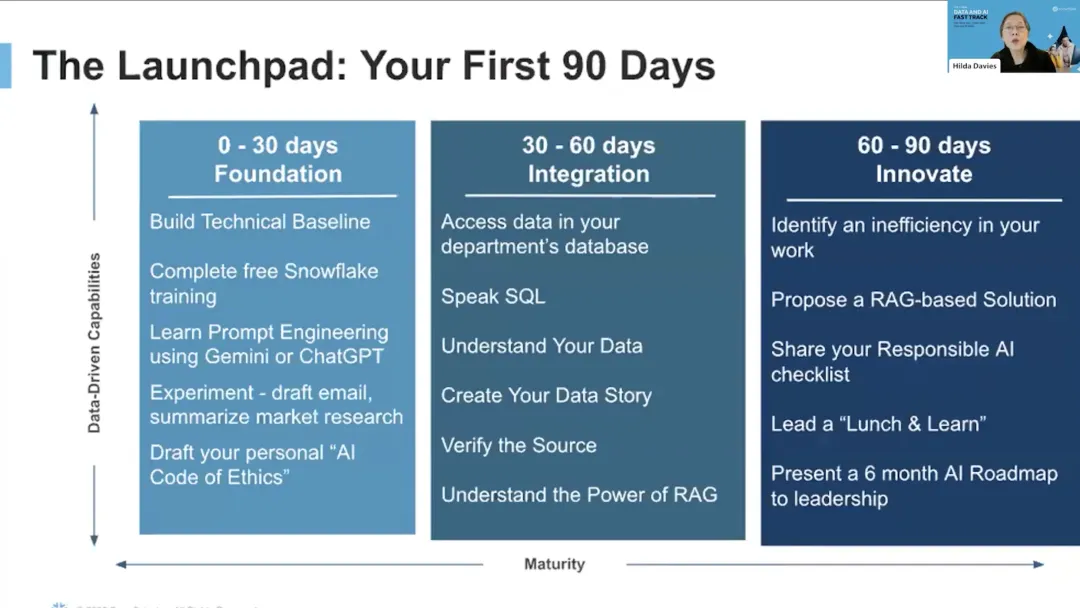 当 AI 成为人人可用的通用副驾驶,会用 AI 不再是优势,而是门槛。Snowflake 数据解决方案架构师 Hilda Davies 指出,真正的竞争力在于:将 AI 的能力与“只有你才懂得的业务情境”相结合。