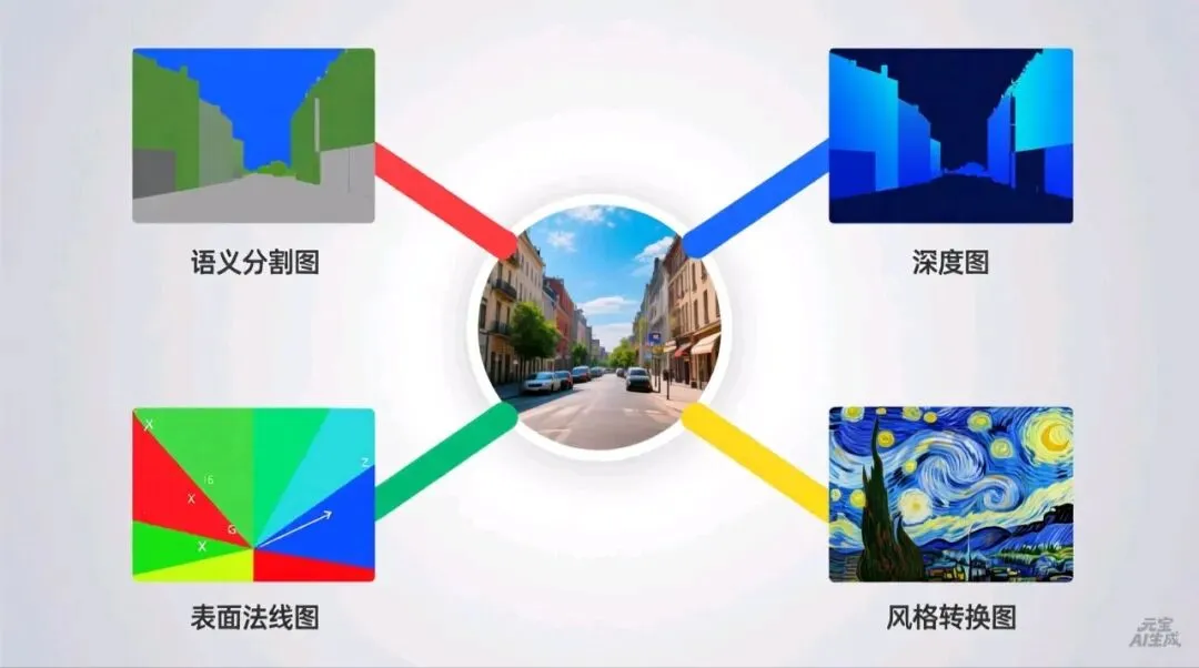 这个理念简单到近乎天才。无论是图像分割、深度估计、表面法线计算,还是物体检测,VisionBanana都将其转化为RGB图像生成问题。就像一个画家,根据不同的指令画出不同风格的“解读”——医生需要病变区域标注?画一幅用颜色标记的“分割图”。自动驾驶需要3D场景理解?画一幅用深浅表示距离的“深度图”。