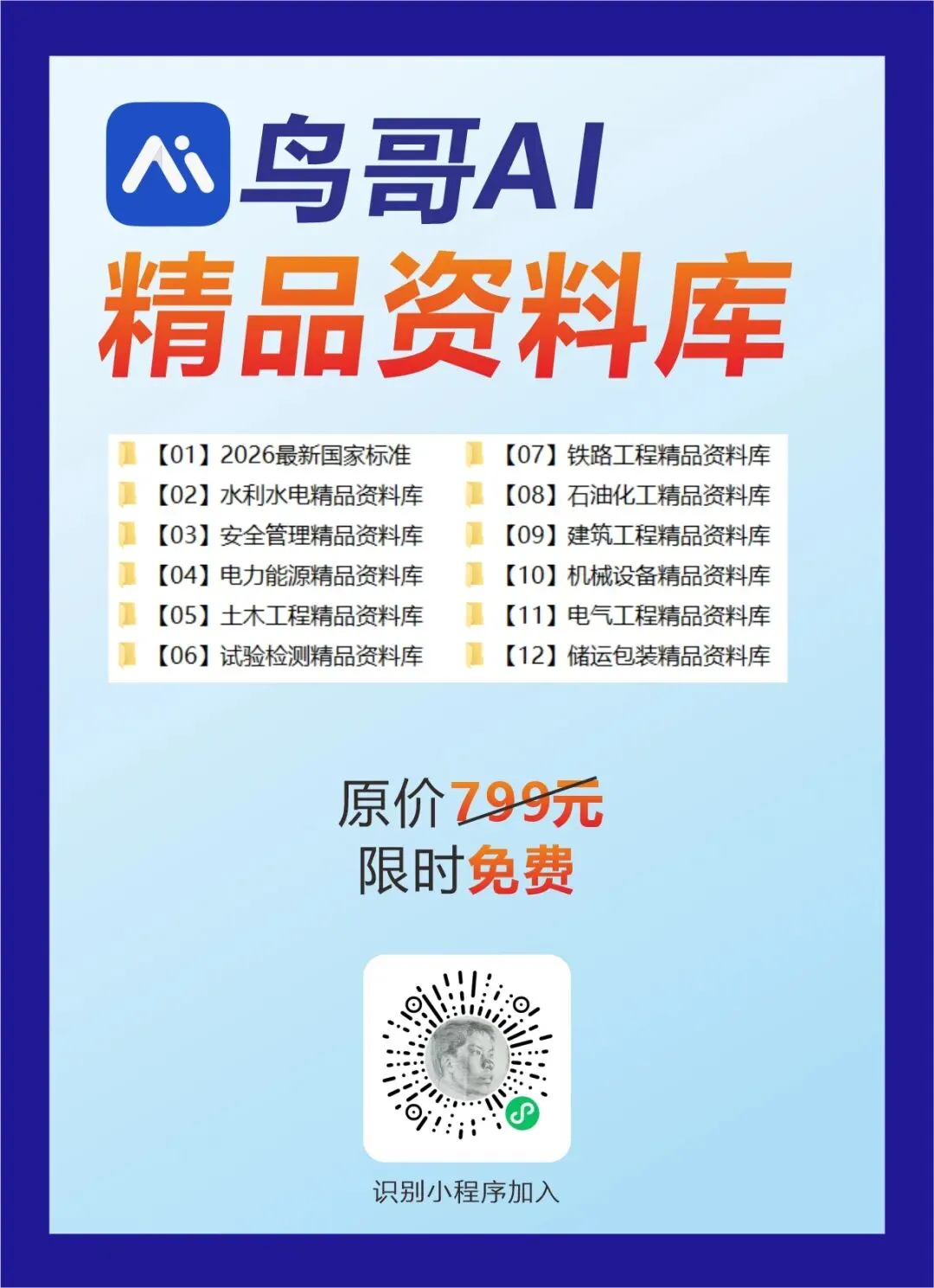 近期很多朋友下载规范时,发现少量网盘打不开。为了解决这个问题,鸟哥将2026年最热门的国标4600本,放到了鸟哥AI知识库。