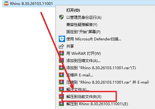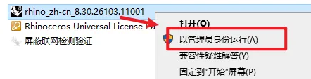 2.打开刚刚解压的文件夹,选中“rhino_zh-cn_8.30.26103.11001”安装文件,右键选择“以管理员身份运行”
