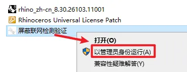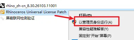 8.选中“Rhinoceros Universal License Patch”右键选择“以管理员身份运行”