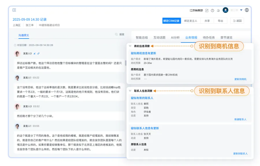 更隐性的损耗在于:这些记录往往不够精准。人的记忆会筛选、会遗忘、会失真。客户在对话中释放的预算信号、对特定功能的顾虑,都可能在事后被遗漏或变形。