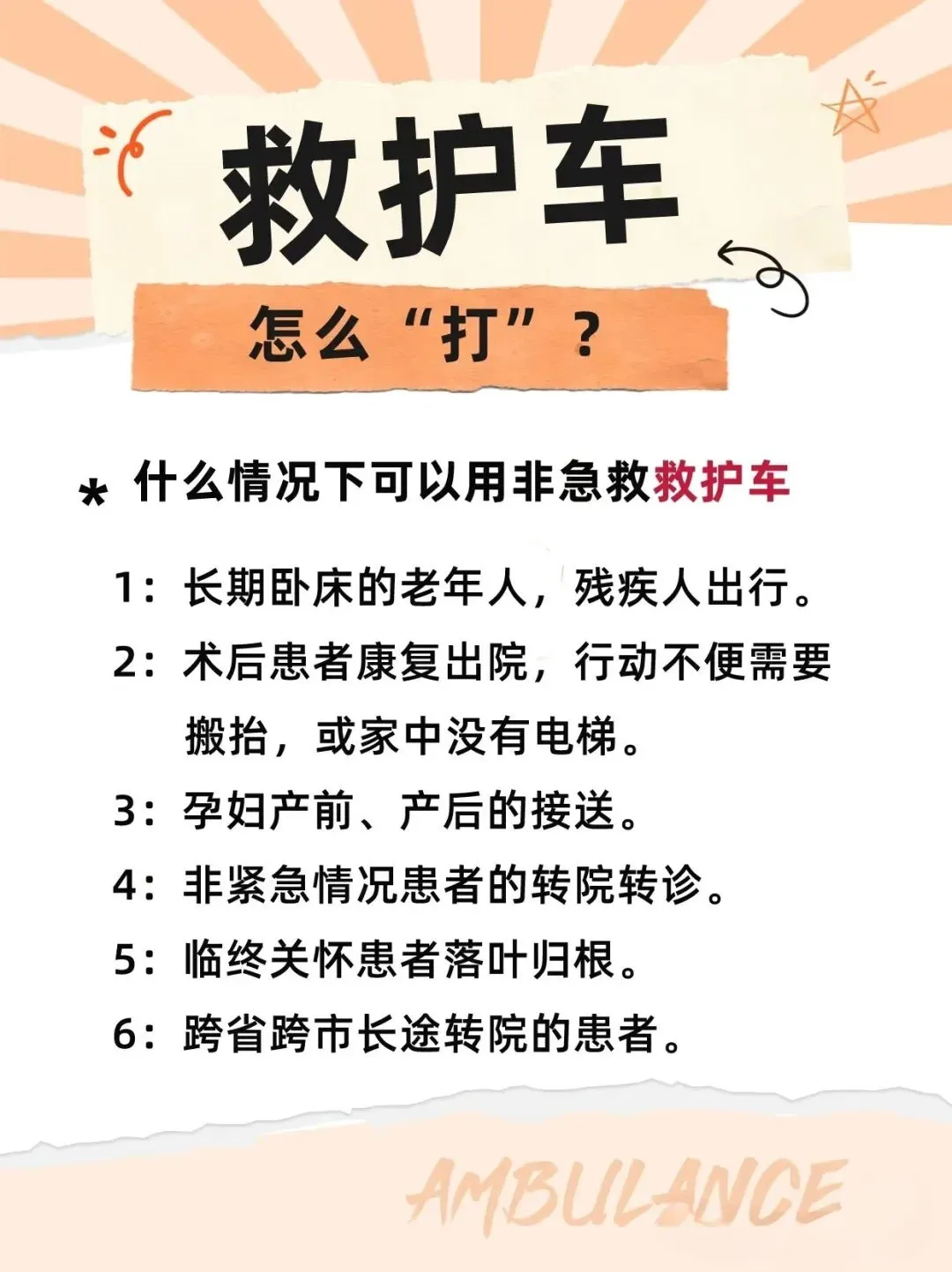 5、别贪低价:正规车成本高(车、油、设备、护士、保险、维护),明显低于市场价的,必有猫腻。