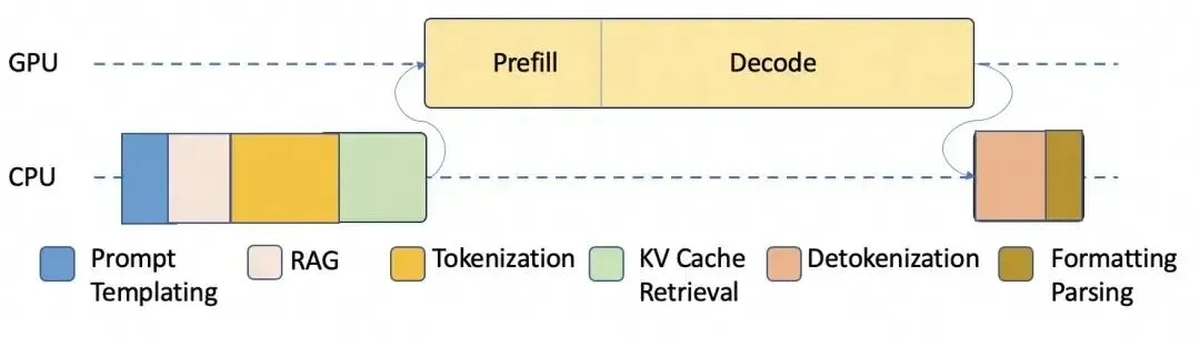 编排层是AI智能体的调度中心,是中枢神经,完全由CPU负责,而LLM的推理像一个人的四肢,由GPU/NPU负责执行,GPU是一个完全被动的device,接受来自CPU的命令和存储传送过来的数据,执行推理,再返回存储系统,然后最终输出。