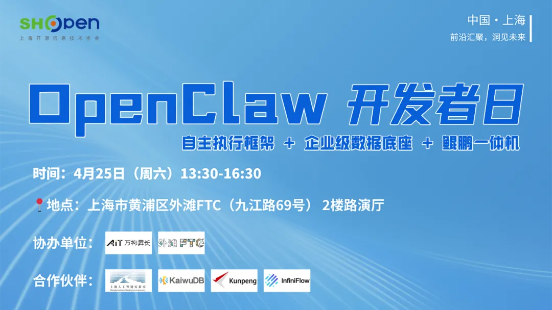 4 月 25 日下午,由上海开源信息技术协会主办的“OpenClaw 开发者日”在上海外滩 FTC 成功举办。
