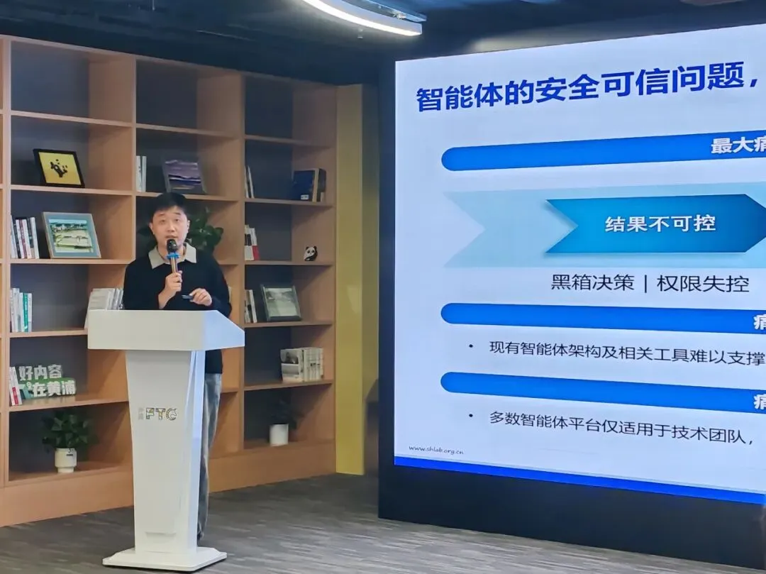 在首场分享中,上海人工智能实验室青年研究员周鹤峰围绕 Agentic AI 从实验走向真实业务场景过程中面临的安全挑战,周鹤峰从产业视角切入,分析了当前智能体系统在权限控制、执行边界、数据泄露、过程可审计等方面存在的现实风险。他指出,随着智能体获得更强的任务拆解、工具调用和环境交互能力,安全可信问题已经成为 AI 产业落地过程中不可回避的关键议题。