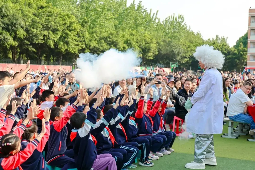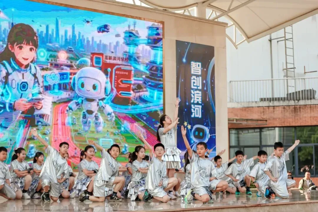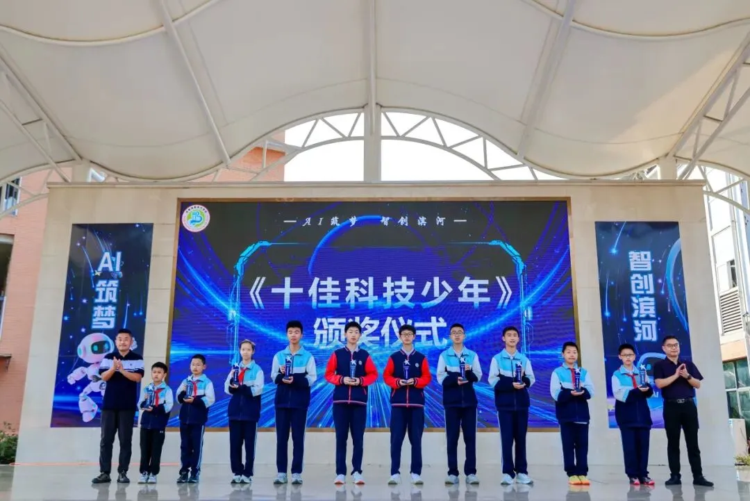 科学魔幻秀精彩上演,沉浸式互动实验带来震撼视觉体验,点燃学生科学热情。举行滨河十佳科创少年颁奖仪式,树立科创榜样。小雪花街舞社团携手机器人演绎《就是哪吒》,5.8班同学带来科技群舞《少年智创 共筑星河》,尽显滨河少年风采。