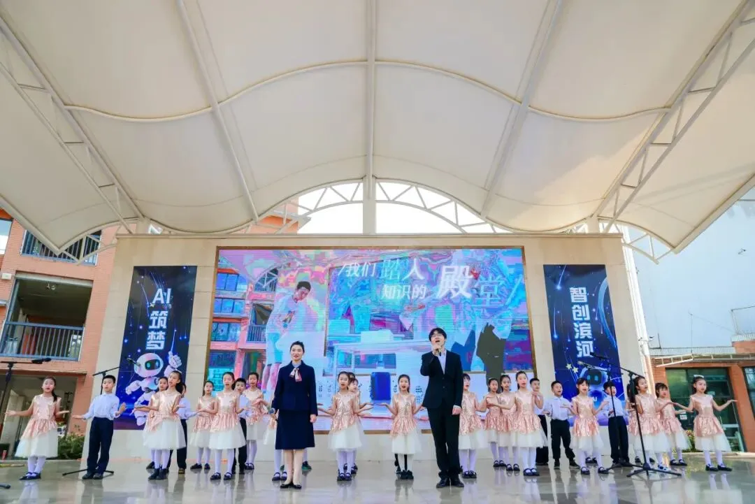 首先,蔡敏校长致辞,寄语滨河少年以AI为翼,勇于探索、智创未来。蔡敏校长表示,学校正积极响应国家“人工智能+教育”行动计划,秉承“润达”育人理念,坚持做生动的科创教育实践。以科技嘉年华为实践载体,把智能素养、创新精神与实践能力融入育人全过程,鼓励每一位少年在探索中求知、在实践中成长、在协作中奋进,以创新创造为路径,努力成长为适应智能时代、堪当时代重任的新时代少年。