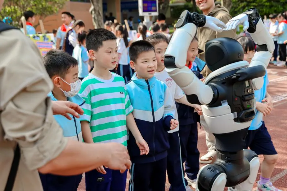 机器人与机器狗灵动相伴,主动与学子互动嬉戏,灵动姿态尽显科技温情,让学子在欢乐中感知智能魅力。