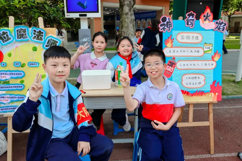 学生自主筹备、亲手打造的趣味科学实验,精彩纷呈。神奇火焰、纸上柠檬、火焰气球等实验带来直观震撼。参与体验的同学们动手尝试、近距离观察,在惊叹与欢笑中触摸科学本质,解锁知识背后的神奇奥秘。
