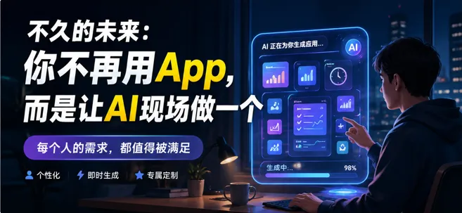所以说,未来肯定是APP会逐渐的减少,然后呢,更多的是即时生成的应用.到时候全世界所有的微小的需求,每个人特别特别个性化的这些需求都能够被AI以很快的速度、高质量地生产出来。