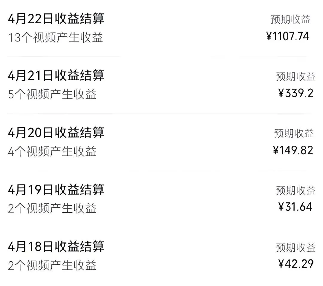 1、某频号分成收益