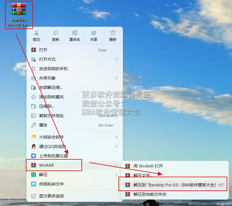 公众号关键词回复:Bandizip