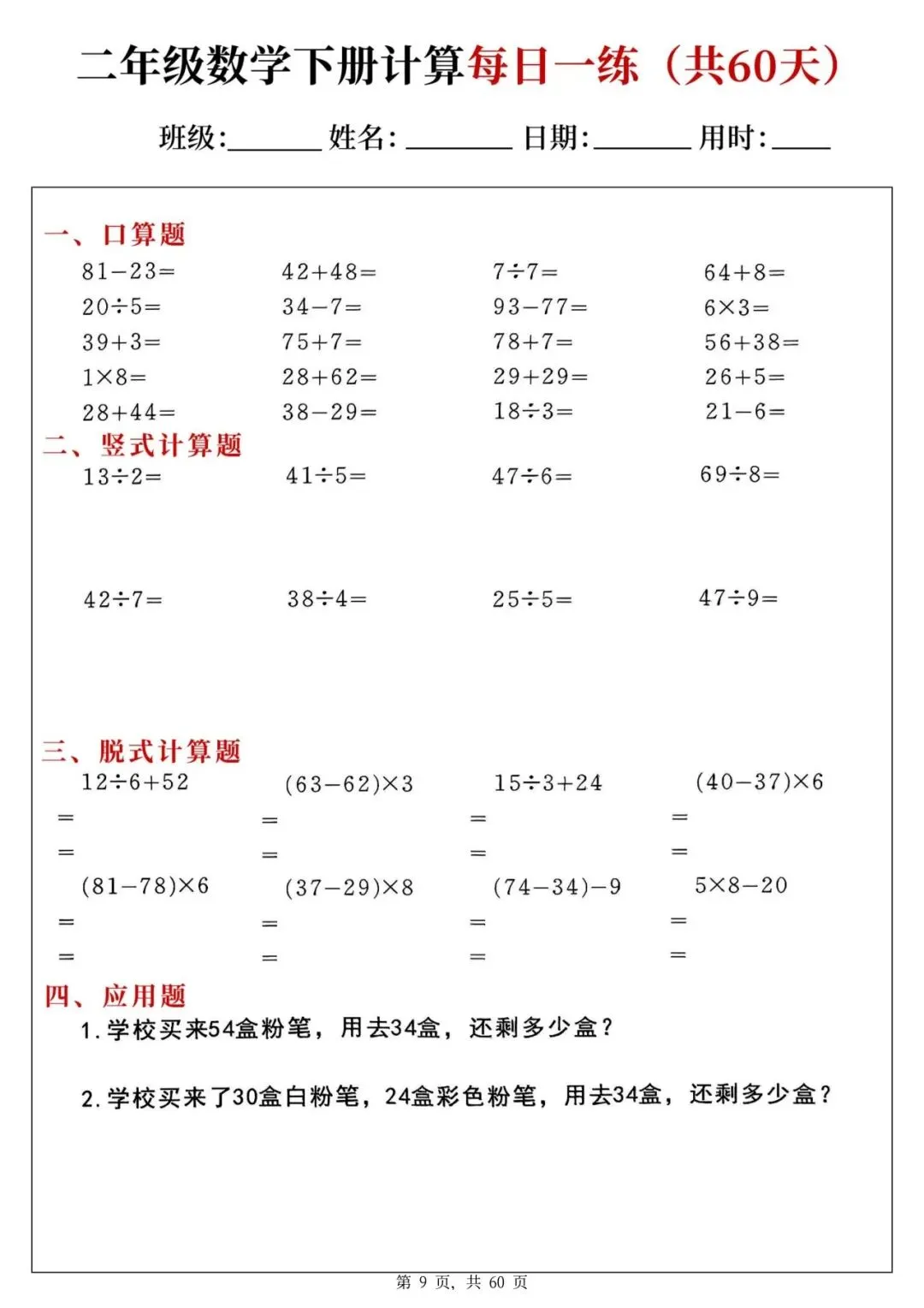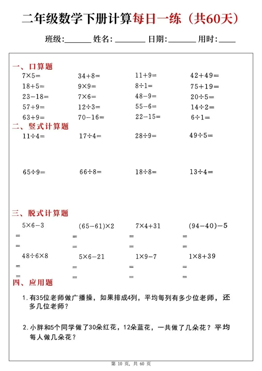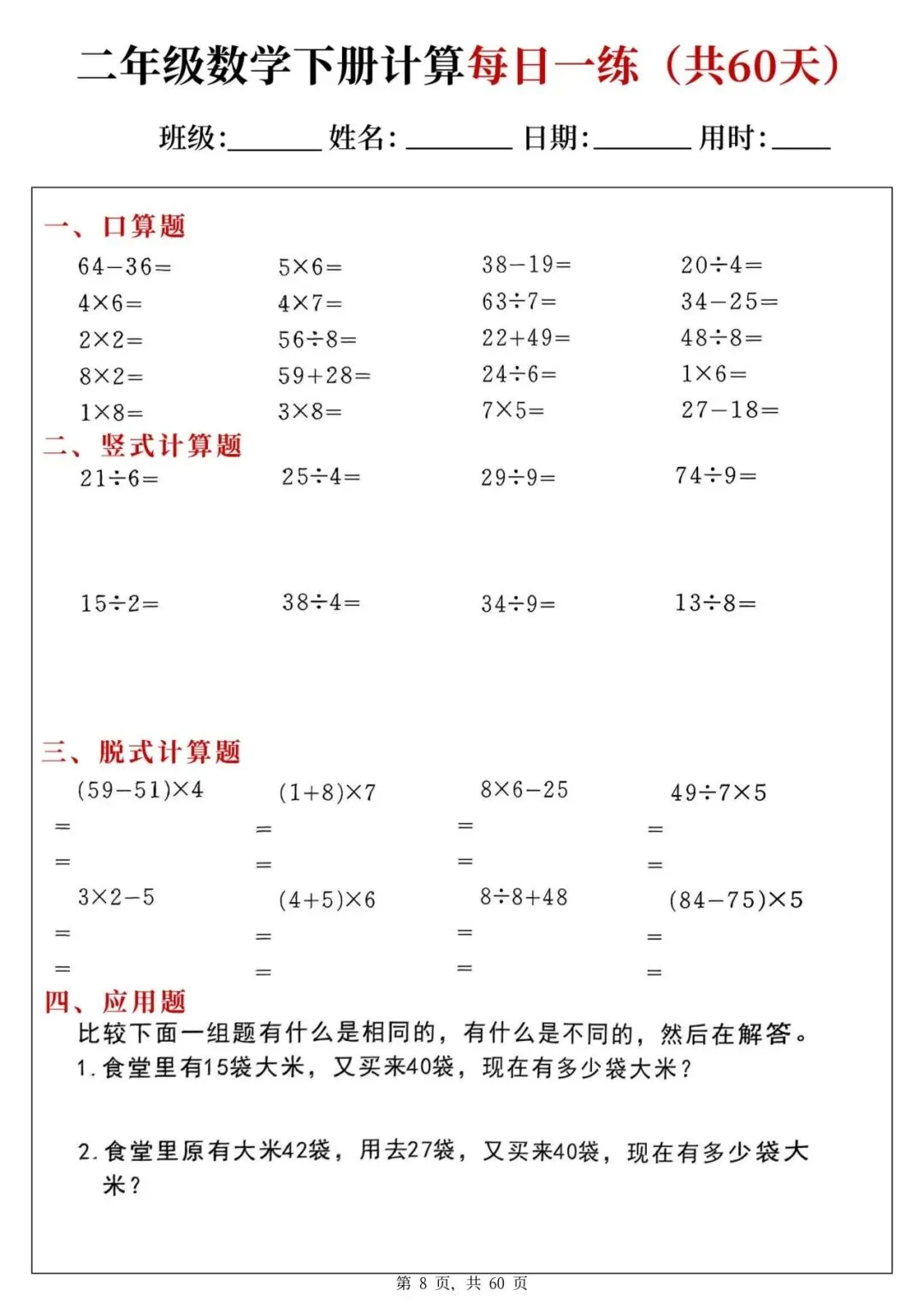 2026春二年级下册数学《口算应用专项每日一练》40页完整版,可打印 注:文章结尾有免费获取电子版步骤 领取完整电子版资料:①点一点右下角的“赞”和“在看”,感谢②在公众号对话框中回复:0427 ↑不会领取资料的请看以上步骤↑