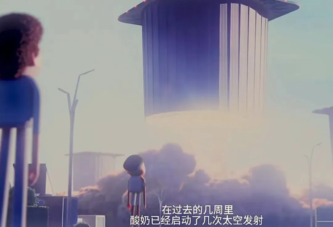 最后一幕是地球上的人类仰望着升空的酸奶飞船,表情里混杂着惶恐和茫然。他们心里在想的是——万一酸奶走了,我们怎么办?