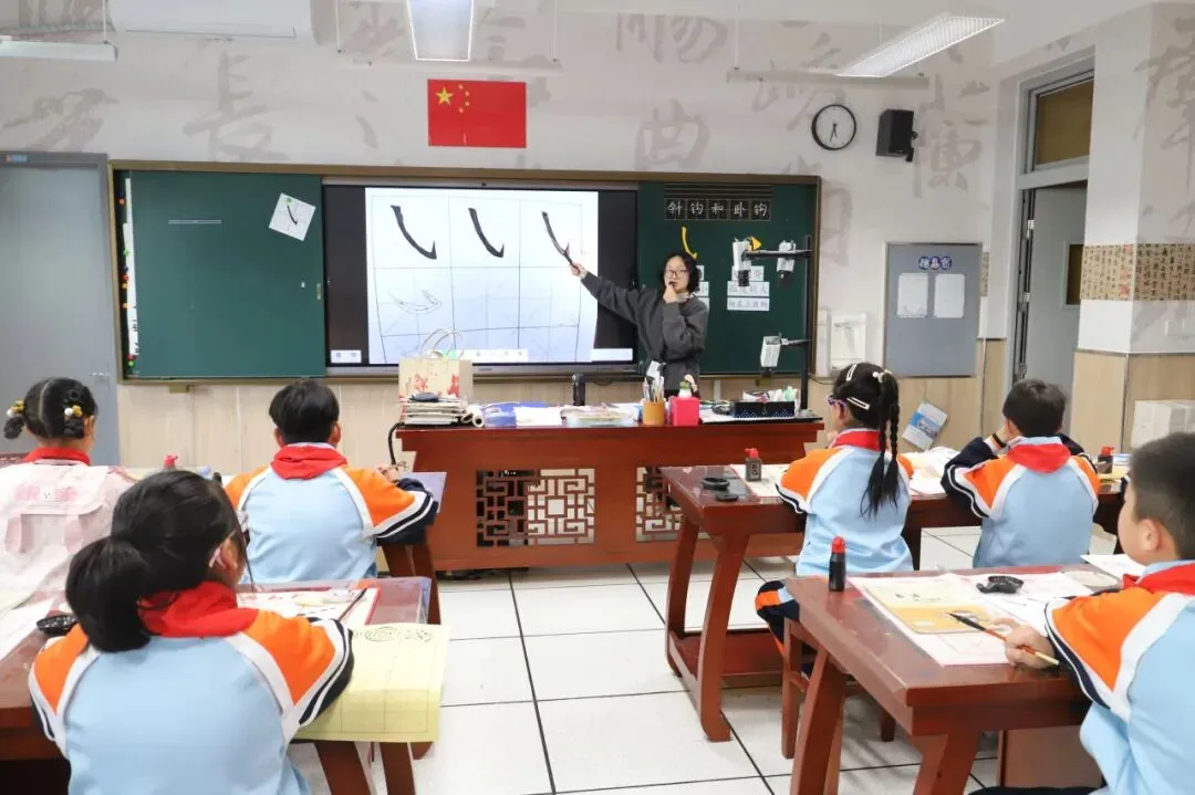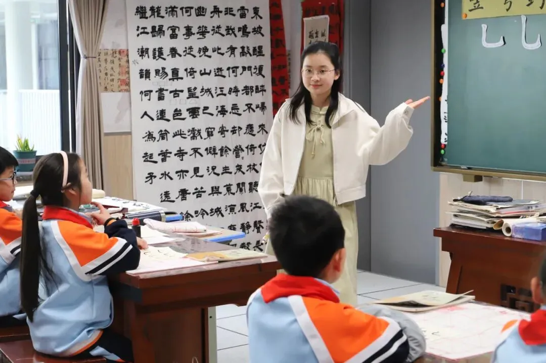 张语歆:毛笔字《竖弯钩》教学匠心独运,借助AI打造书法学习场景,突破传统书法教学难点。课堂注重手把手指导与相机点评结合,学生执笔有力、书写规范,在墨香中感受汉字之美,让书法课堂兼具传统韵味与科技新意。
