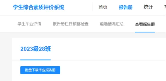 班主任登录进去—报告册—查看报告册—-批量下载毕业报告册。