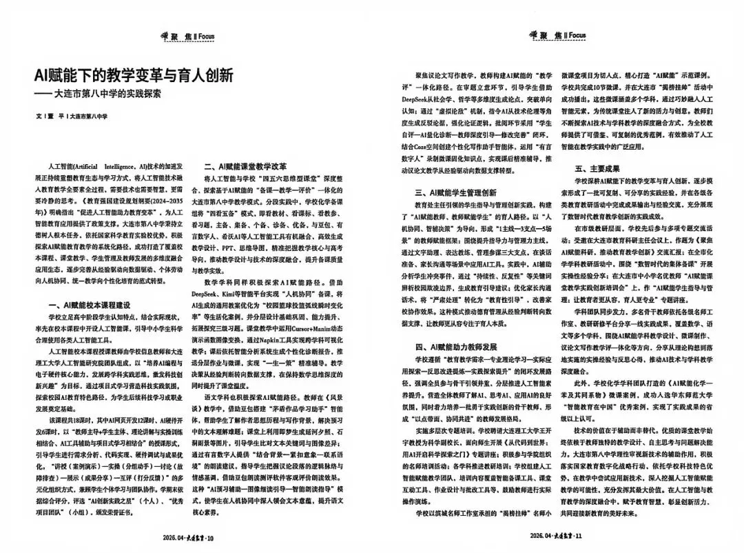 大连教育 | 董平:AI赋能下的教学变革与育人创新——大连市第八中学的实践探索
