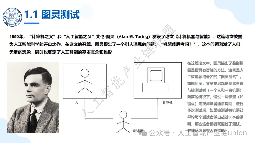 1. 图灵测试与人工智能的诞生这一切的起点,可以追溯到1950年。这一年,“计算机之父”艾伦·图灵发表了一篇划时代的论文《计算机器与智能》,并提出了一个至今仍在被探讨的问题:“机器能思考吗?” 他设计的“图灵测试”,为机器智能的定义提供了一个最初的参照标准。