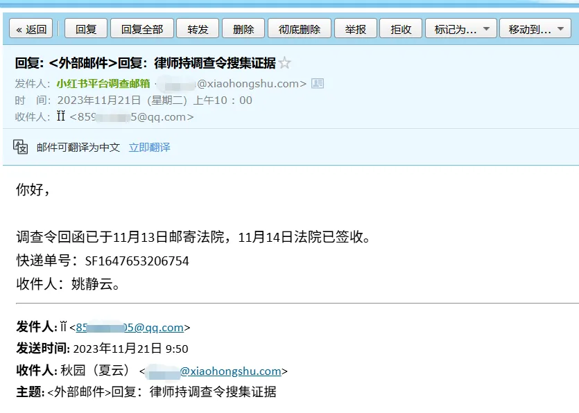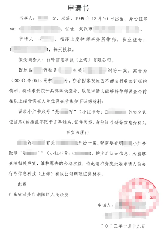 怎么调取小红书APP账号实名认证信息? 新朋友点击☝☝蓝色关注我 如有法律问题,请联系李律师18859223782(微信同号) 1.向法院出具“调查令申请书”; 2.法院出具调查令(盖章版)以及调查令(回执单)。 3.持有调查令、律师证、介绍信,发送至小红书邮箱。公司会把调查结果内容邮寄至法院。 5.法院收到调查内容,长这样☟