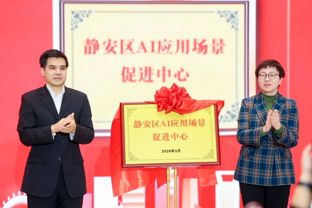 会议现场,静安区AI应用场景促进中心正式揭牌。