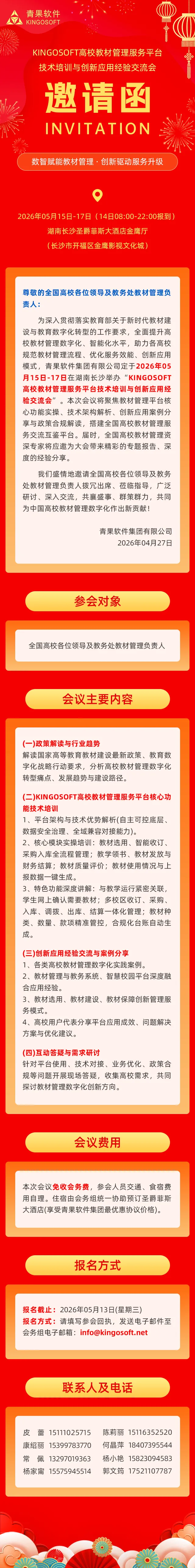 青果软件集团诚邀您出席“KINGOSOFT高校教材管理服务平台技术培训与创新应用经验交流会”